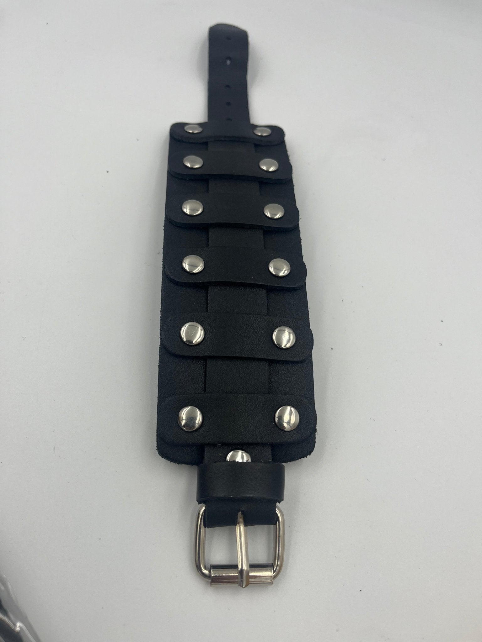 Genuine leather black SteamPunk armband with studs. Unisex. 5cm wide, at the widest part which is 16cm in length.