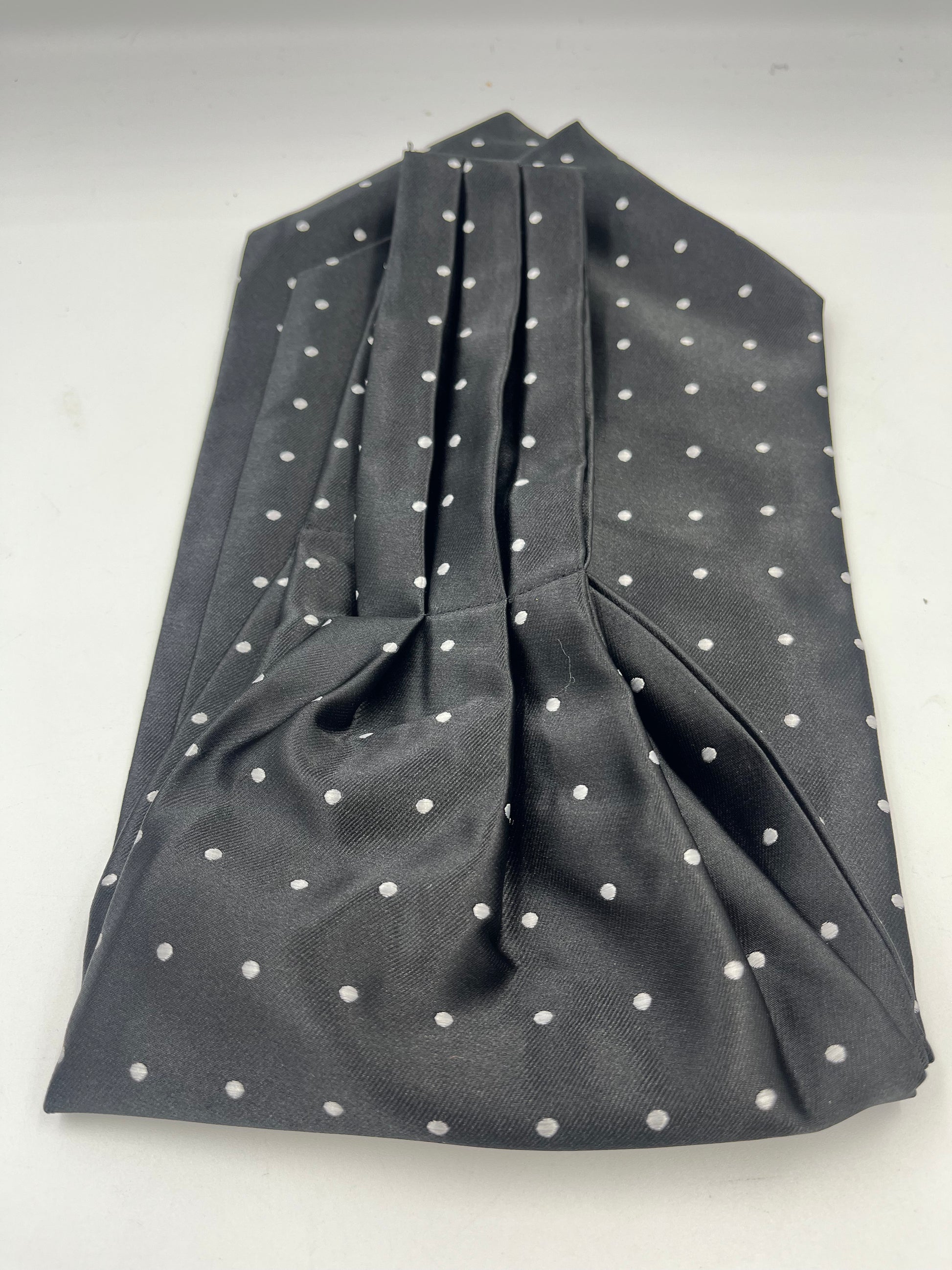 This luxurious black with white dots ascot tie cravat is perfect for weddings or formal events. Standard length. Silk blend fabric. Premium quality.